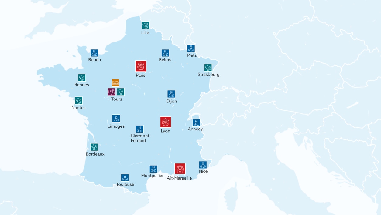 En effet, Henry Schein France dispose d’une implantation unique sur le marché dentaire. Nos 300 conseillers commerciaux et techniciens sont répartis sur l’ensemble du territoire à travers différents sites en régions :